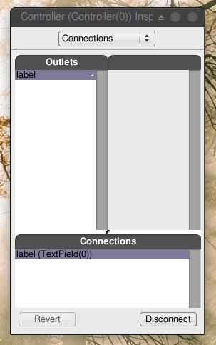 Then I need a “outlet” in this class to connect to the label in the window, and an “action” which is triggered when the button is press.