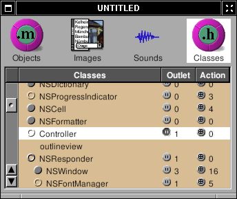 Create an instance of Controller, and connect the outlet “outlineview” to the outline view in the window. Be sure that you connect to outline view, not the scroll view or the table column