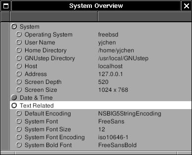 ADD_NAME_VALUE(@"System Font Encoding", [[NSFont systemFontOfSize: [NSFont systemFontSize]] encodingScheme]);
